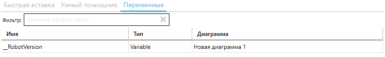 **The "Variables" tab** allows you to specify the necessary project variable. You can use the text field "Filter:" for searching.