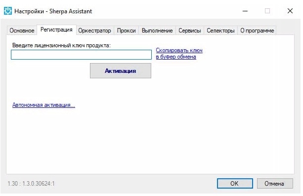 Чтобы зарегистрировать лицензию робота, нужно предварительно завершить работу Sherpa Designer (если он был запущен). Затем запустите Sherpa Assistant с помощью ярлыка на рабочем столе.