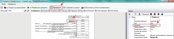 Справа якорем будет выступать слово «по». По аналогии добавляем якорь в рабочей области Шаблонизатора, нажимаем на OCR-блок «по» и производим проверку.