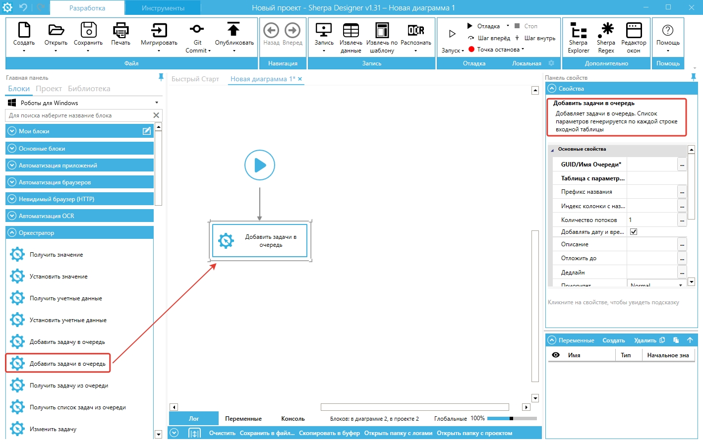 Помимо палитр блоков описанных далее в этом разделе, существуют вспомогательные инструменты, например, коннекторы, которые помогают сделать диаграмму более понятной и удобной. Разделение связи между блоками и добавление коннектора продемонстрированы здесь.
