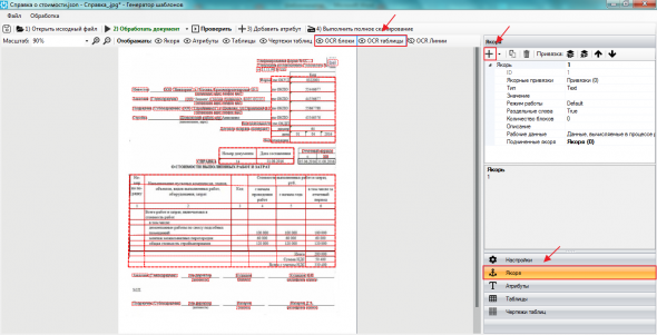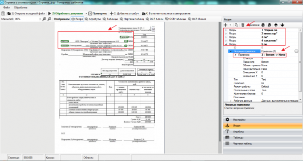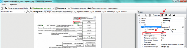 Когда значение якоря задается нажатием клавишей мыши на OCR-блок, — к значению добавляется знак «*», если значение указывается вручную, — добавлять этот знак необязательно. При использовании якорных привязок знак «*» нужно удалить и после этого добавить привязку.