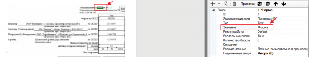 В случае, если мы укажем в качестве якоря слово «Форма», то якорь будет установлен неверно, т.к. в документе есть несколько OCR-блоков, распознавших это слово.