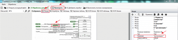 По аналогии создаем якоря для атрибута «Заказчик». Слева якорем будет выступать слово «Заказчик». Добавляем якорь, нажимаем левой клавишей мыши на OCR-блок «Заказчик» и Шаблонизатор автоматически заполняет строку «Значение», определяя якорную точку.