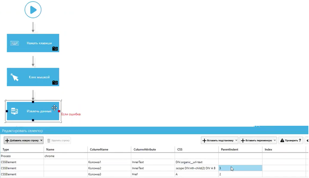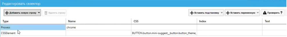 Хоть редактирование селекторов для браузеров осуществляется в том же окне, что и для приложений, внешний вид таких селекторов отличается. В них обычно всего две или три строки, причем верхняя строка всё так же обозначает процесс, в данном случае Chrome, а нижняя – тот селектор, с помощью которого мы будем искать нужный элемент управления страницей. Здесь используется нотация СSS-селекторов, она не такая сложная, как может показаться на первый взгляд.
