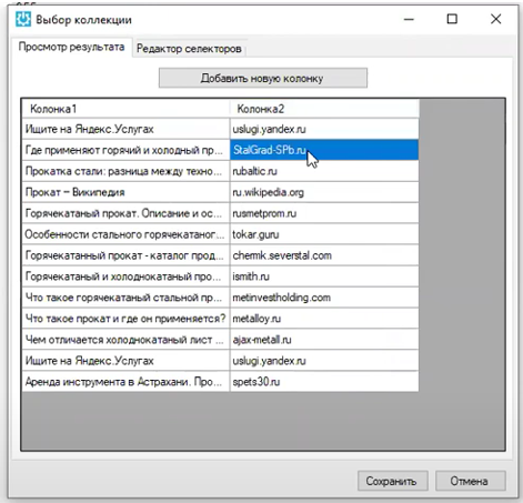 Если нужно извлечь из списка результатов не только заголовки, но и, допустим, описание, адреса и пр., можно использовать кнопку “Добавить новую колонку”.