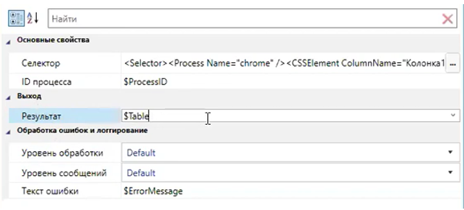 Данный блок отправляет результаты в переменную, указанную в выходном свойстве результата.