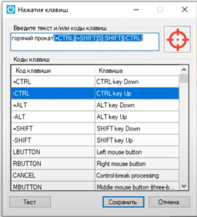 Например, после введенного текста нужно нажать какую-то комбинацию клавиш, допустим, CTRL+Shift+S. Для этого дважды кликните по строке, где указано +CTRL (+ означает нажатие на кнопку)
