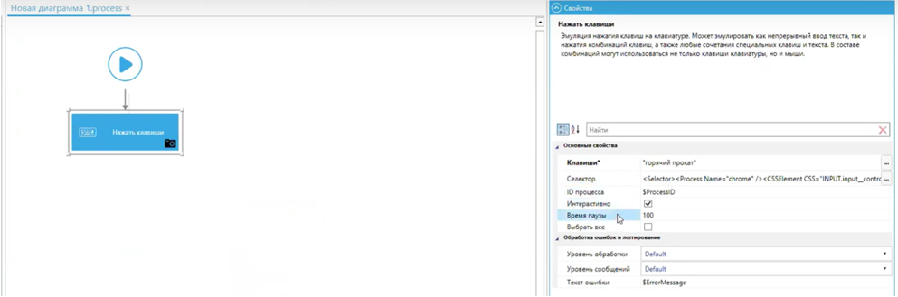 Благодаря тому, что в свойствах проставлена галочка “Выбрать всё”, робот сначала удаляет текст, который уже был в элементе управления.