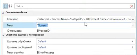 У него также есть селектор, впишем туда строку “Привет”.