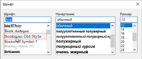 Предположим, требуется, чтобы робот выбрал в этом окне необходимый шрифт. Задача усложнена наличием полосы прокрутки.