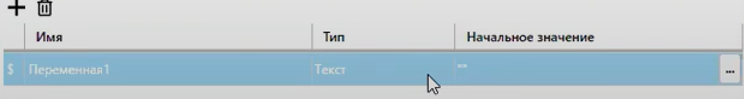 Создадим Переменную1 текстового типа.