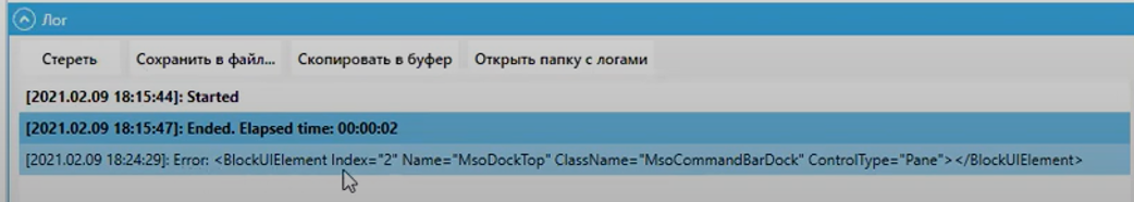 При нажатии на кнопку Подсветить видно, что определилось окно приложения Word, но затем возникла некая ошибка. Ошибку можно найти в логе.